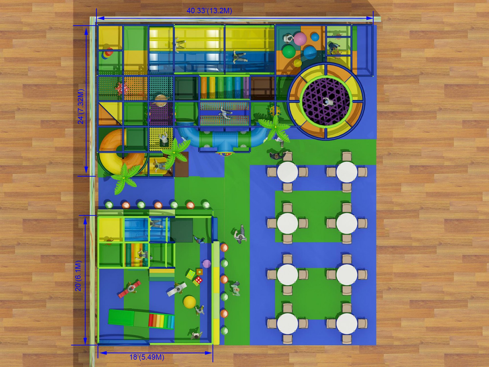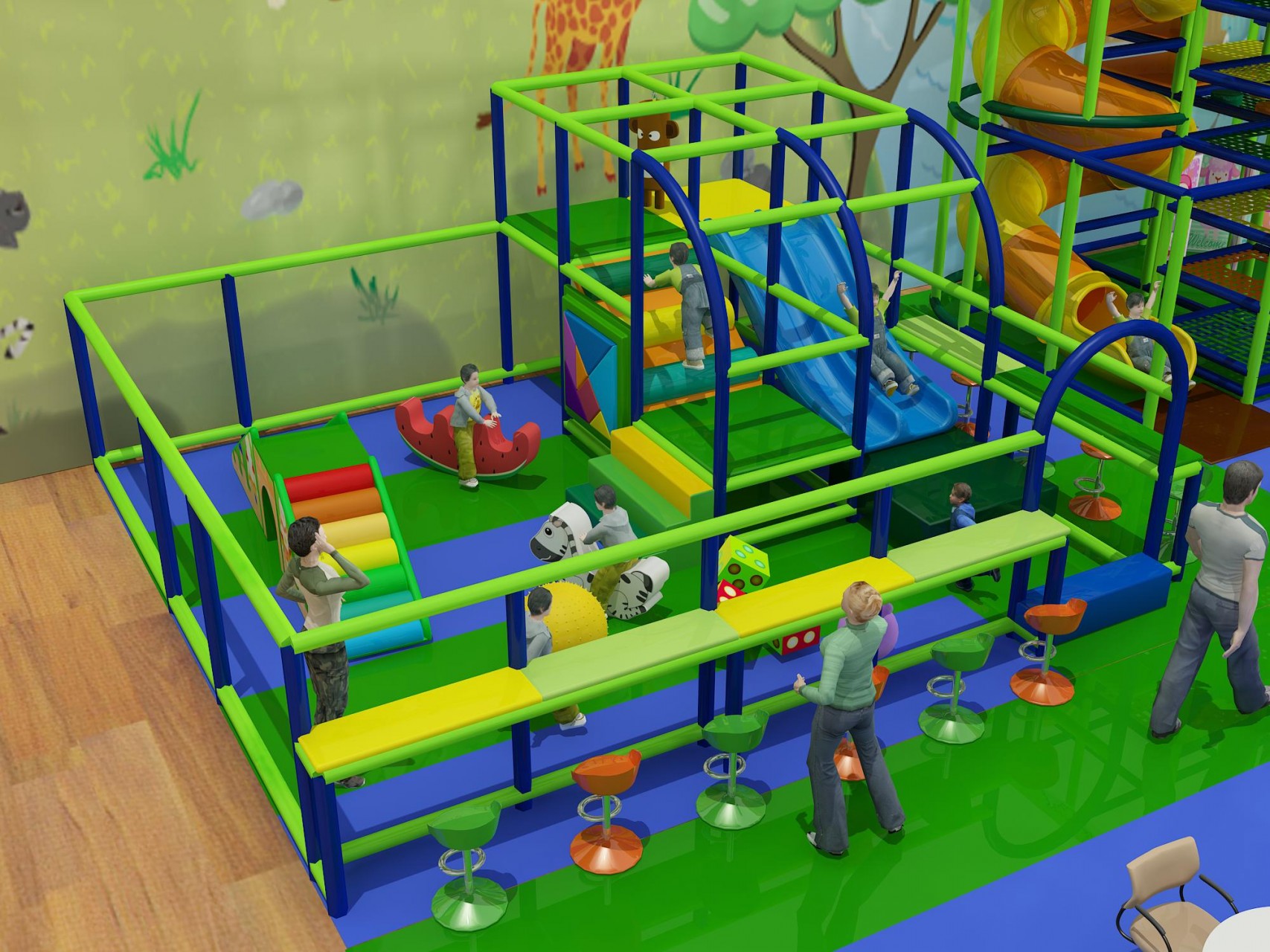 As a result, parents and staff can easily supervise children while kids move confidently between play zones.