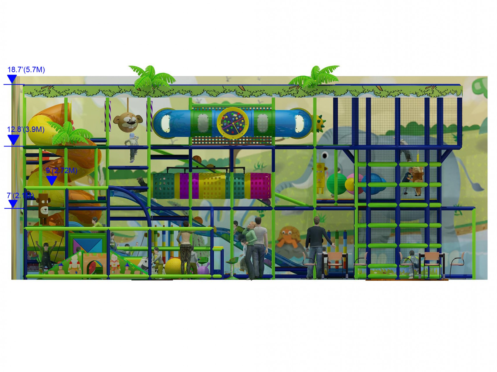 Because it combines high-energy play with clear supervision and parent seating, this jungle gym works especially well for family entertainment centers, indoor playground businesses, and commercial play spaces.