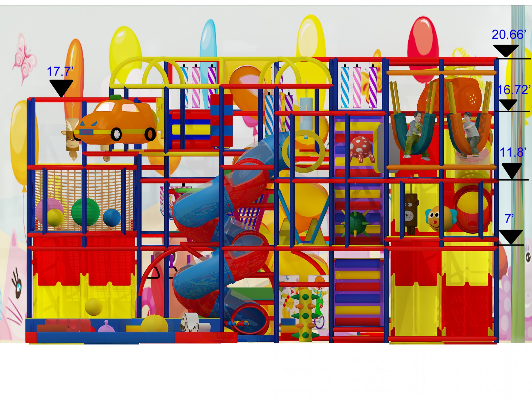 The 3 Story Mixed Theme Indoor Playground is a high-energy, multi-level indoor play structure designed to keep children active, engaged, and entertained for hours. With three exciting levels of play and a dedicated toddler area, this playground offers age-appropriate fun for both younger and older children.