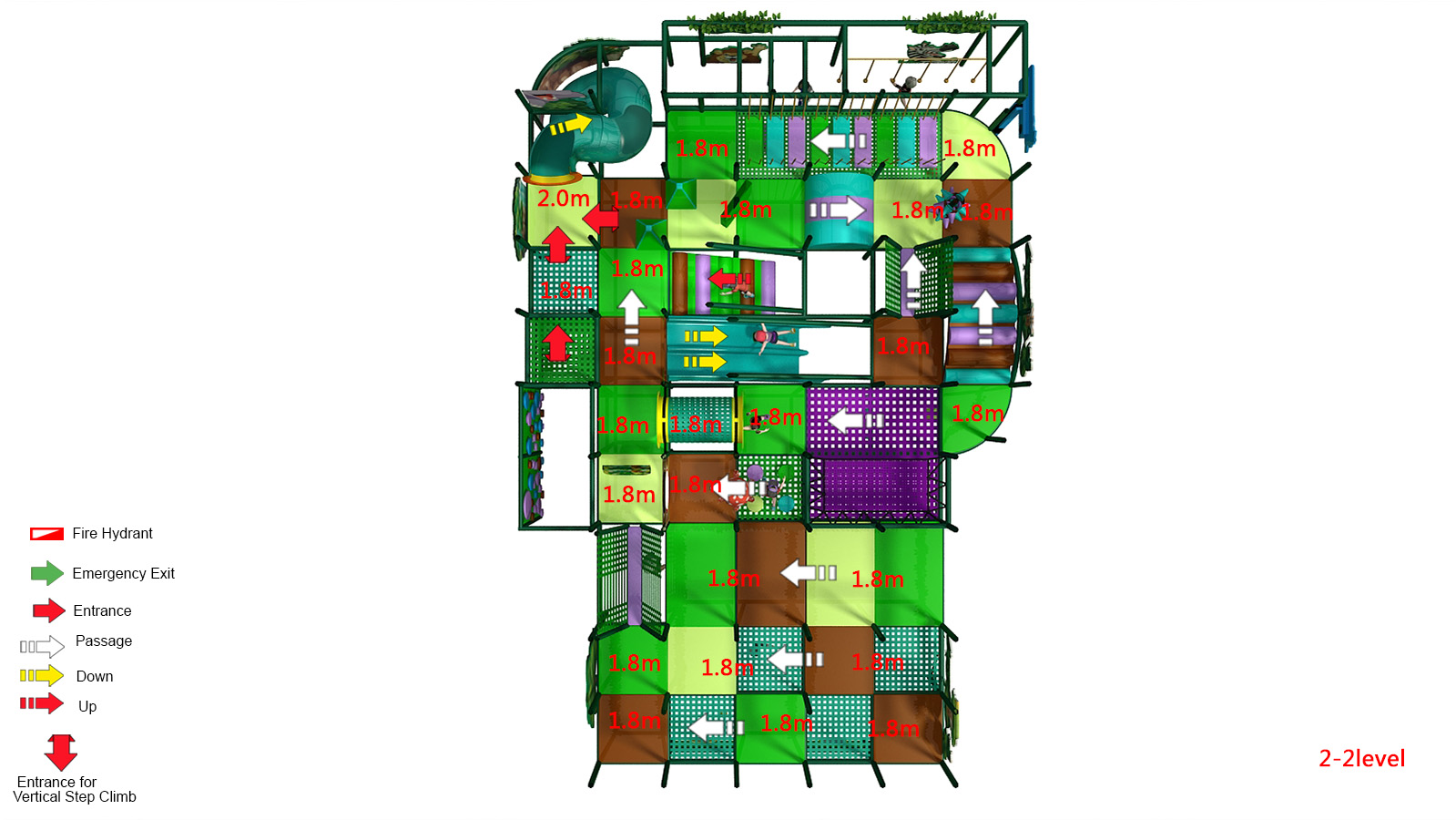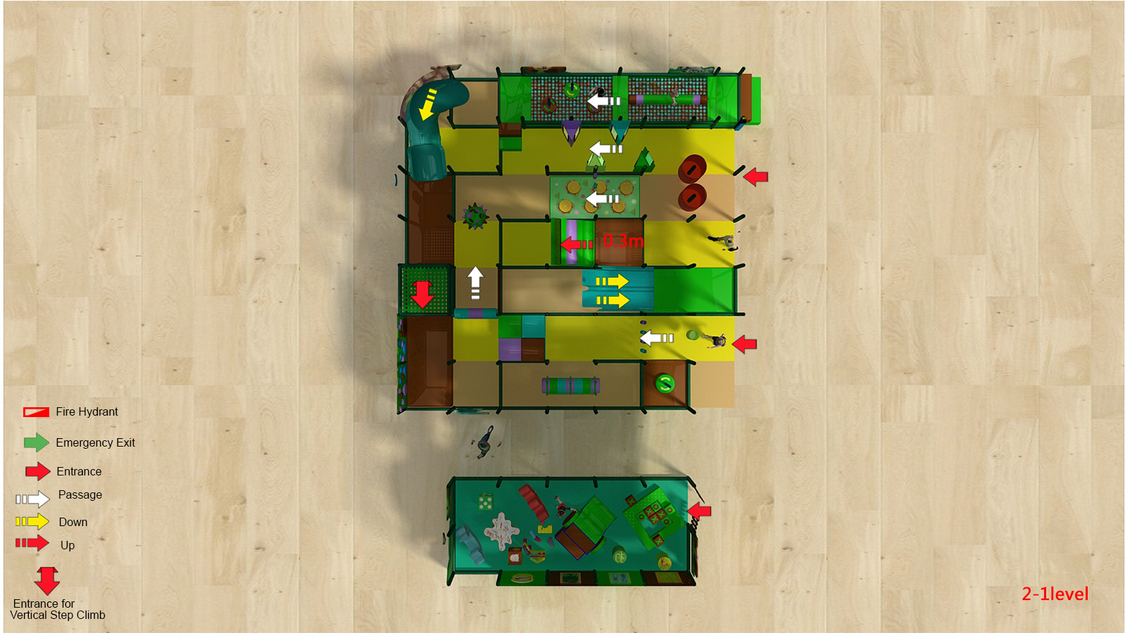 🛝 Slides – Multiple slide elements provide exciting descents and continuous play flow across both levels.