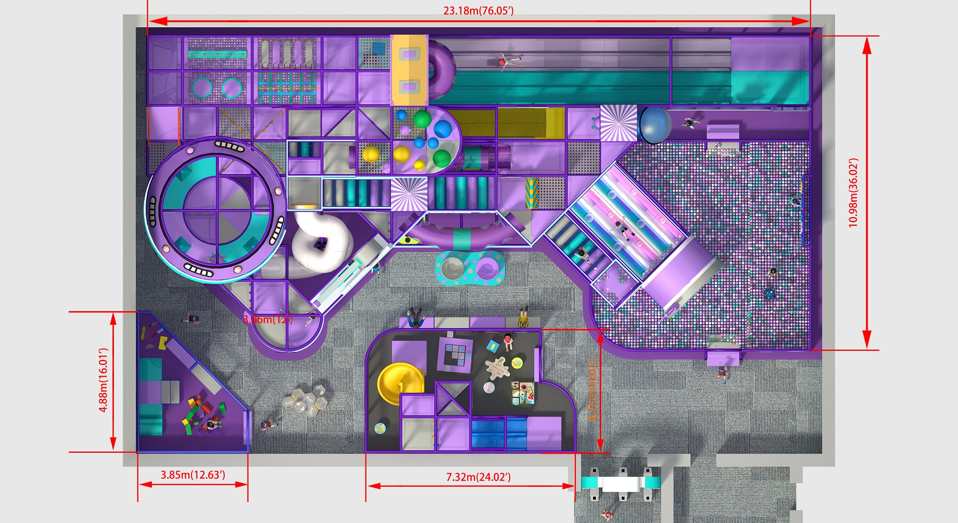 As a result, this commercial indoor playground is an ideal showpiece for family entertainment centers and large indoor play venues seeking a high-capacity, high-impact attraction.