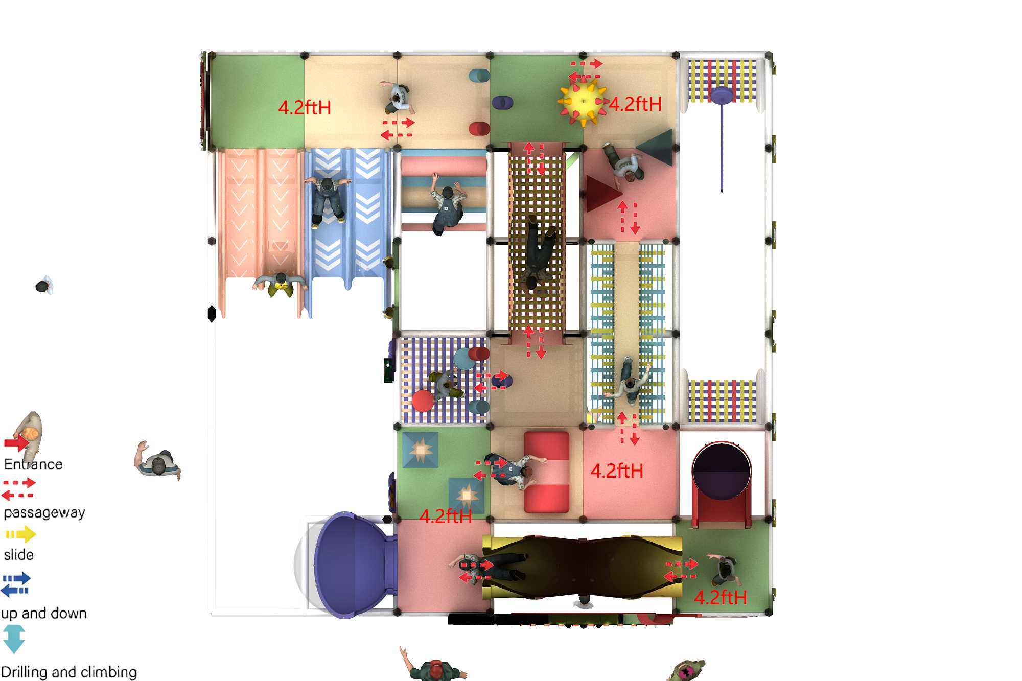 From candy-colored patterns to interactive climbing textures and soft lighting, every detail of Melody Park supports joyful, open-ended play. Additionally, the music-inspired décor makes this commercial indoor playground a visually engaging centerpiece within any indoor family entertainment space.