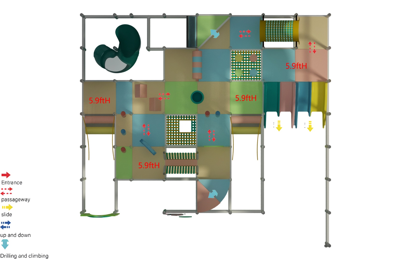 👨👩👧👦 Family-Friendly Layout – Designed to balance high-energy climbing challenges with softer, more comfortable play areas for younger children.