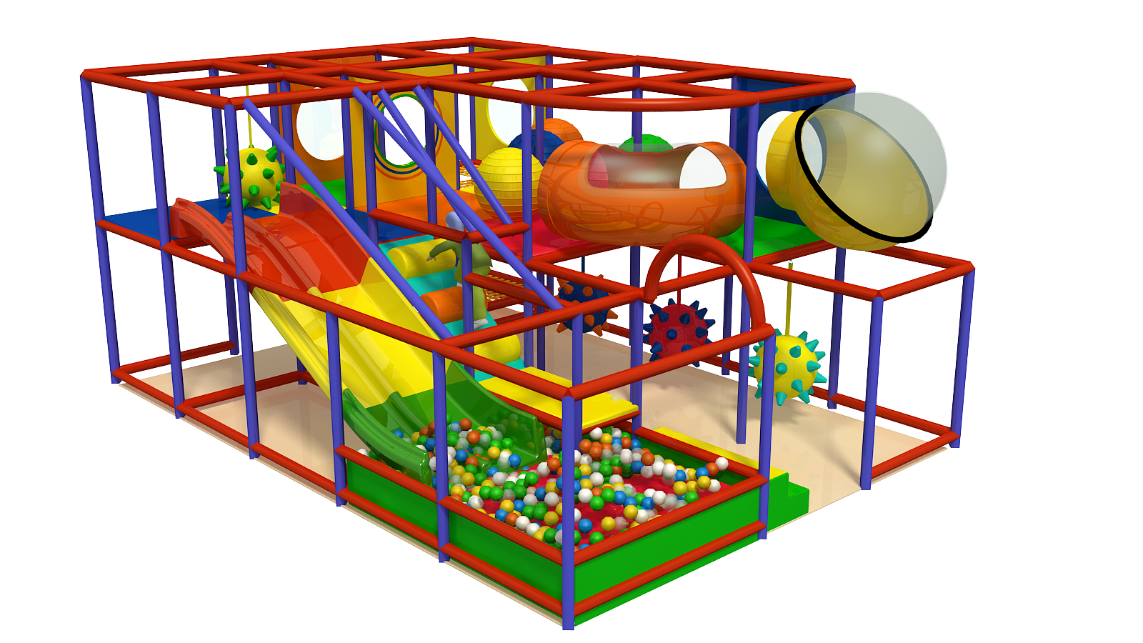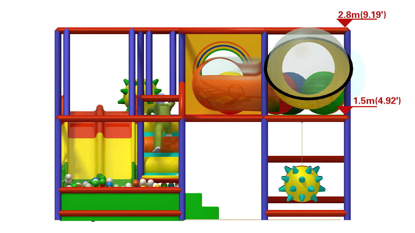 💥 Spike Bombs – Hanging soft obstacles challenge coordination and movement while adding excitement.