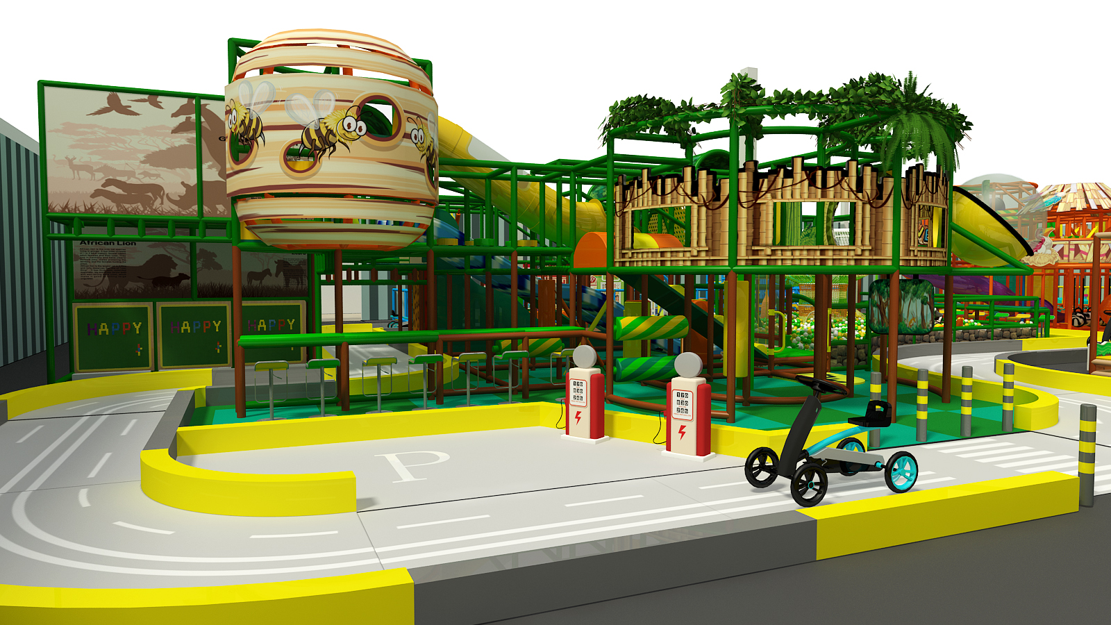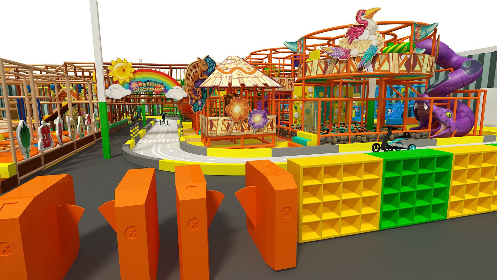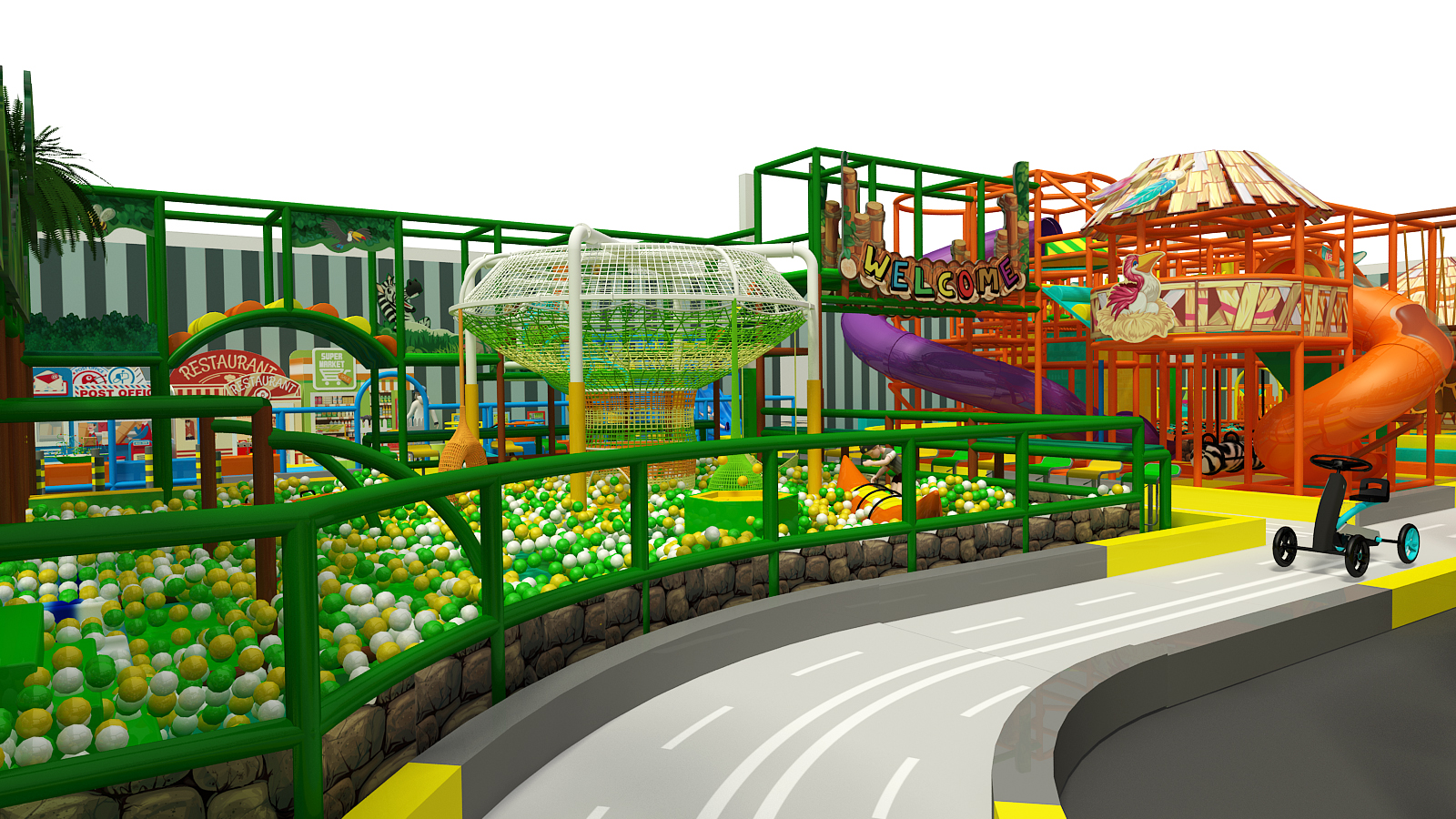 Designed as a complete indoor play city, this playground features clearly defined zones that allow children to explore age-appropriate activities throughout the space. From toddler-friendly areas to high-energy adventure zones, the layout supports smooth traffic flow while maintaining visibility for parents and staff. At the same time, the vibrant design creates an exciting, city-style atmosphere that feels dynamic and welcoming.