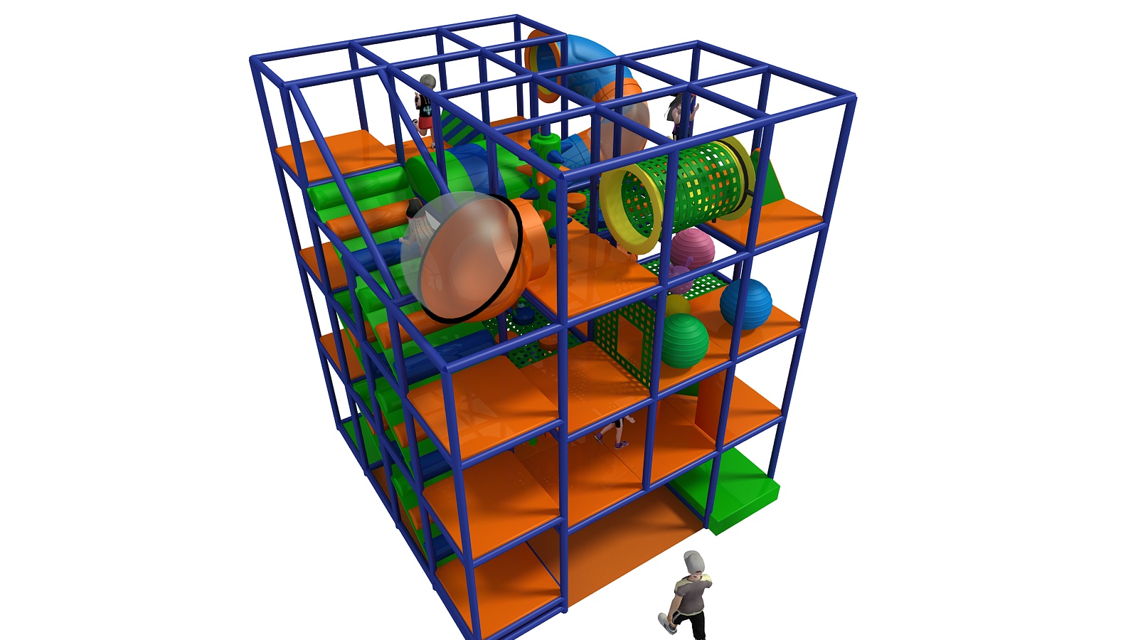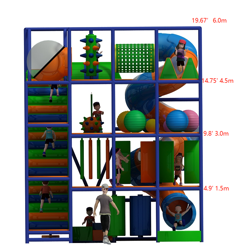 This tall indoor playground transforms limited space into a vertical adventure. Children climb upward, explore tunnels, and race down slides, creating nonstop movement and excitement. Meanwhile, operators benefit from a compact layout that still delivers strong play value and repeat visits.