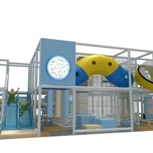 This indoor play gym combines climbing, sliding, and interactive play across multiple levels. As a result, children stay active and engaged for longer periods. Because the layout encourages movement from one feature to the next, it also promotes confidence, coordination, and repeat play.